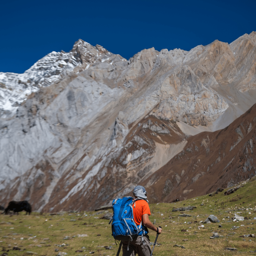 トレイルで他のトレッカーや牛を追い越すときは、常に注意して安全な場所にとどまってください。ハイパスでバックパックを持って上り下りするのは大変です。ダウラギリ・ベースキャンプを過ぎると、トレイルは岩だらけの氷河へと続き、フレンチ・パスを経由してヒドゥン・バレーに向かいます。ヒドゥン・バレーからの道には注意が必要です。